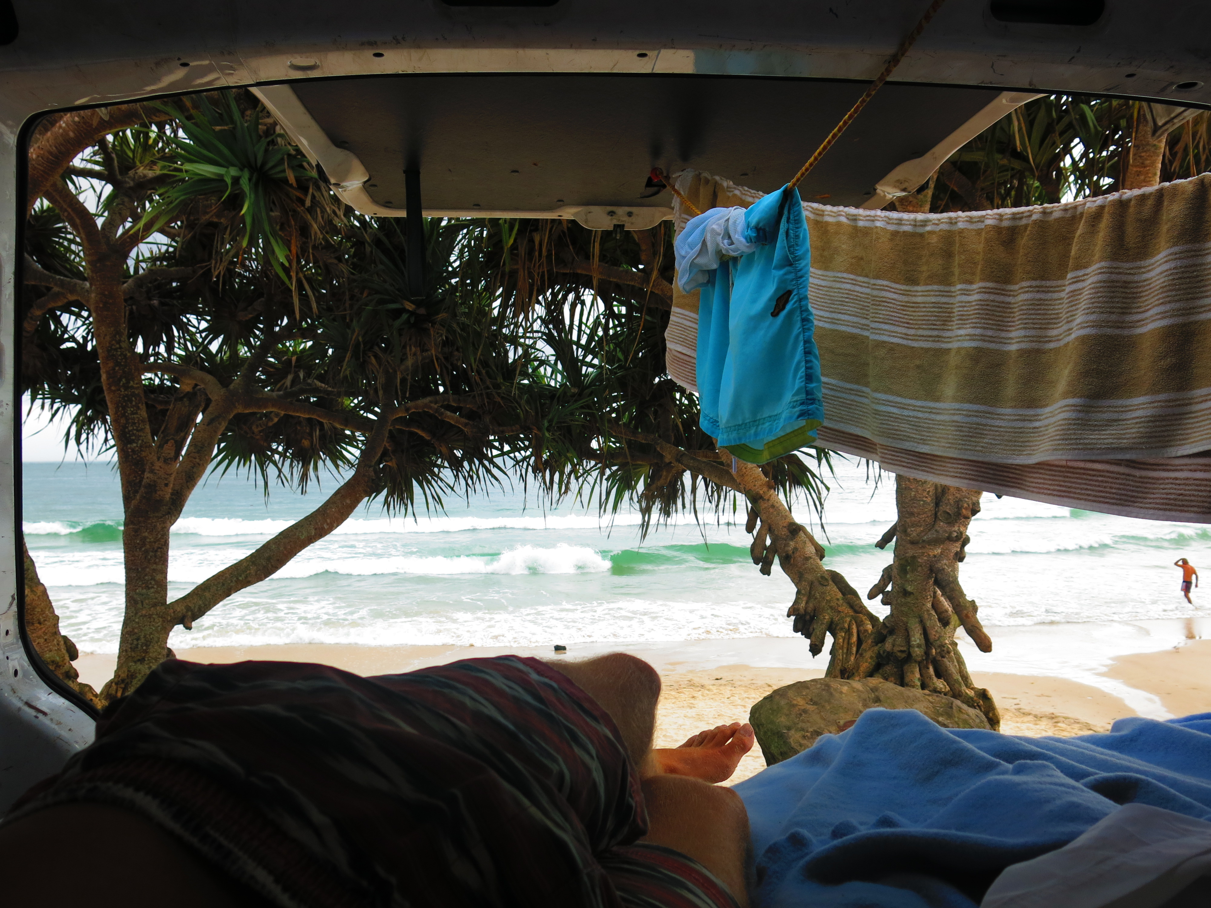 Laying in the back of the van backed up to the edge of Wategos Beach in Byron, reading a book, people watching and swimming to stay cool from the mid-30’s days. Heaven.